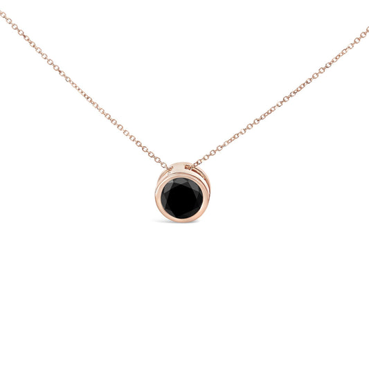 14K Rose Gold Bezel-Set Black Round Diamond Solitaire Pendant Necklace (Black Color, I2-I3 Clarity) - 18"