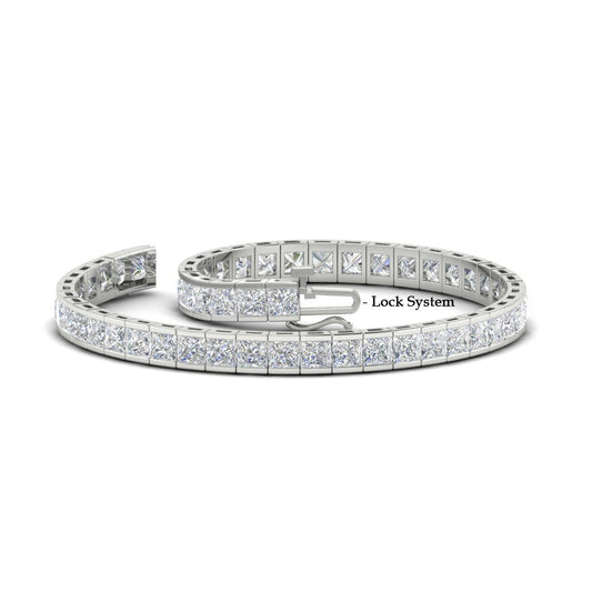 6.00 CTW Created Moissanite Princess Cut Half Bezel Tennis Bracelet in 14K Gold Over Sterling